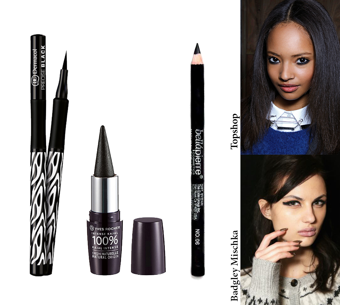 Černé oční linky jsou ještě pořád „in“ a objevují se na beauty scéně v novém rozměru: nejen v pečlivě dotažené, úzké podobě, ale i v přehnaných, silných tazích, anebo ledabyle rozmazané (já a moje obě levé ruce, neschopné rovných čar, jásáme). Tato sezóna je, co se týče líčení očí, nalinkovaná opravdu rozmanitě, ve všech možných tvarech, pomocí jak už klasických tekutých linek, gelových linek, fixů i tužek. Dramatické uhlově černé linky jsou prostě must-have a pokud se ve vaší kosmetické taštičce ještě žádný z těchto produktů neskrývá, tak honem pro něj… a operace Kočičí oči 2.0 může začít.
