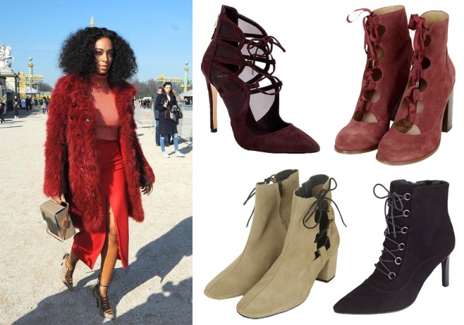 Otužilá nátura rozhodně nechybí americké zpěvačce SOLANGE KNOWLES, která i přes ne zrovna teplé počasí oblékla 7/8 sukni s vysokým rozparkem. Nejspíš ji hřála láska, anebo ten huňatý červený kožich, který rozzářil její černé afro. Zajímavým kontrastem vcelku objemného outfitu jsou béžové kotníkové boty s efektním šněrováním, které celý look zjemnily a navíc jsou prostě k sežrání! Aktuálně tento typ bot najdeme v mnoha provedeních s různě umístěným šněrováním. Na noze vypadají velice netradičně a doslova z nich čiší duch 70. let 😉