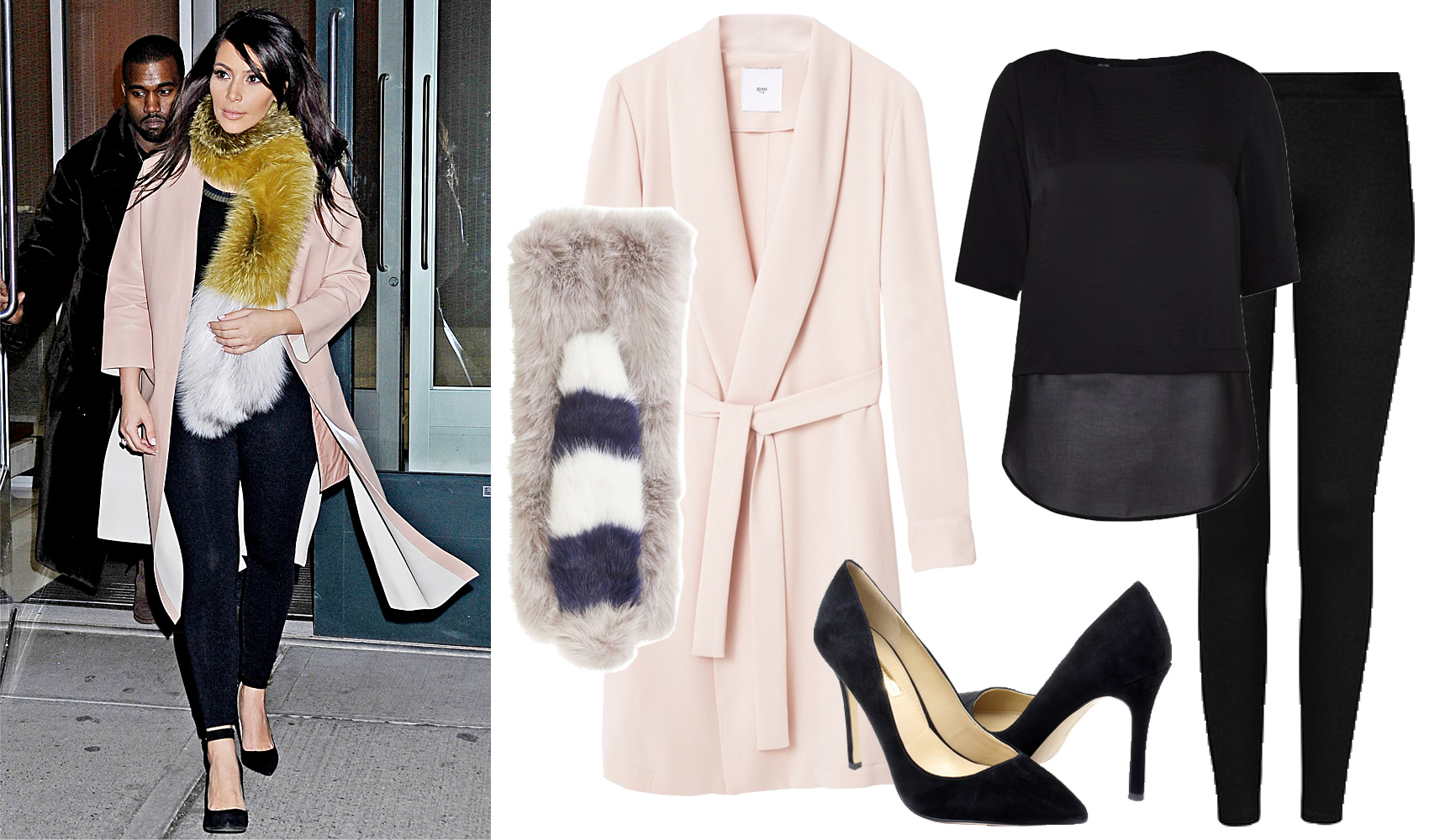 Štola, TOPSHOP (patro +1). Kabát, MANGO (patro +1). Lodičky, Office Shoes (patro -1). Top, F&F (patro +1). Legíny, Tally Weijl (patro -1).