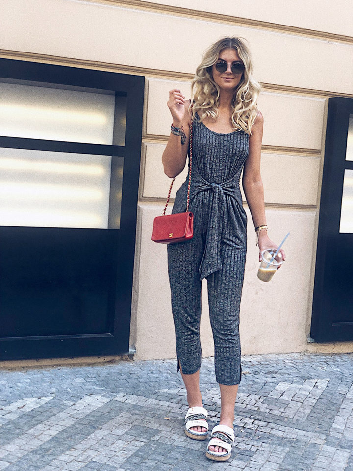 Svetr, RESERVED (patro 0). Kalhoty, MANGO (patro +1). Kabelka a boty vlastní.