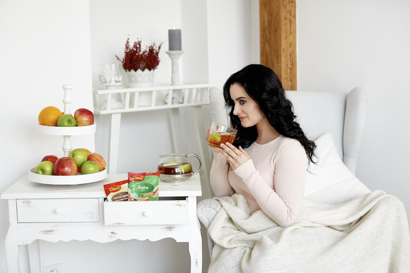 Koření Horké jablko Vitana, čerstvý zázvor, koření Vanikový cukr Dr. Oetker, koření Skořice mletá Vitana, koření anýz, vše dostupné v hypermarketu Albert (patro -2). Jablečná šťáva bio, dm drogerie markt (patro -2).